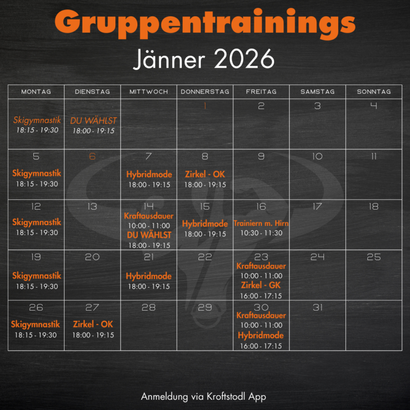 Trainiere mit deinem 10er-Block Gruppentraining um 9,90€ pro Training. Oder werde Mitglied im Kroftstodl – dann ist jedes Gruppentraining inkludiert. Ob Kroftlackl oder Frischling – unsere Top-Trainer bringen dich und deine Spezis in die Welt von Fitness und Gesundheit.
